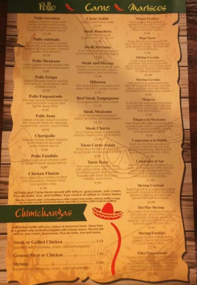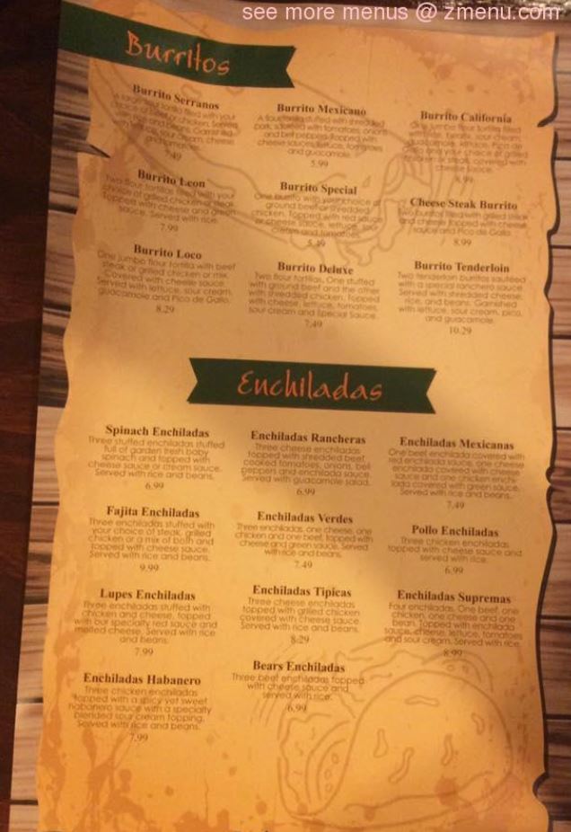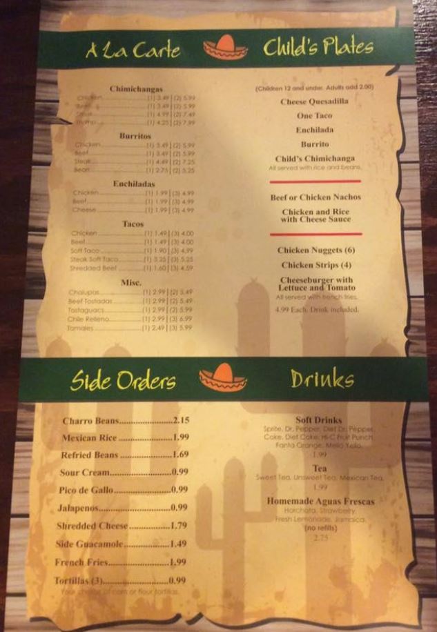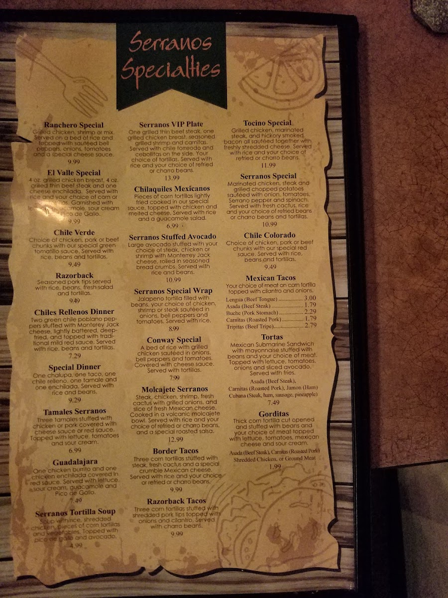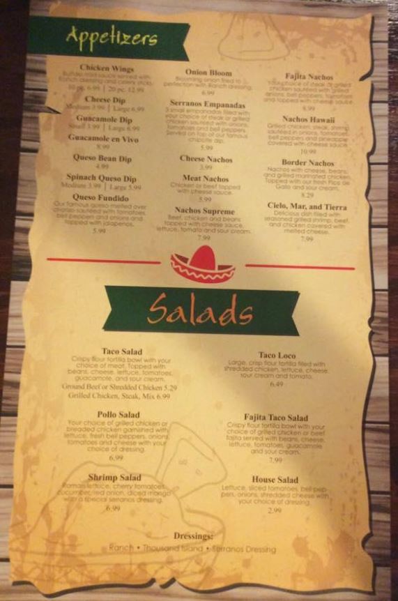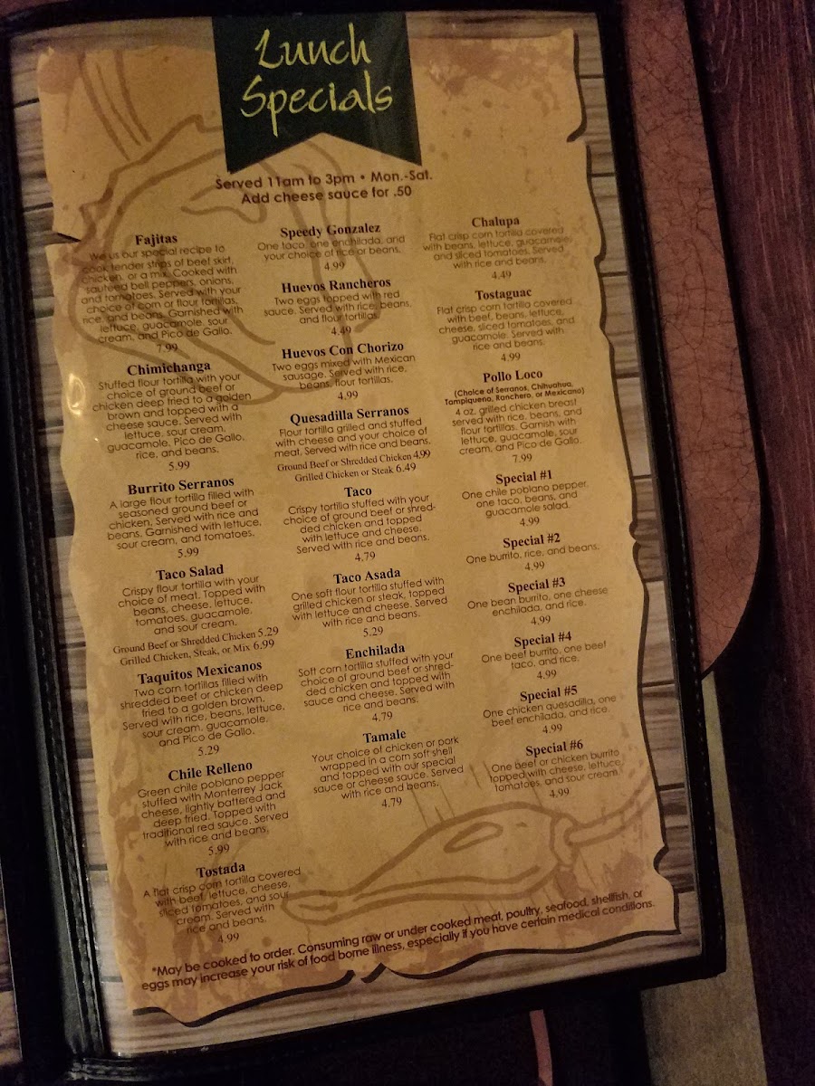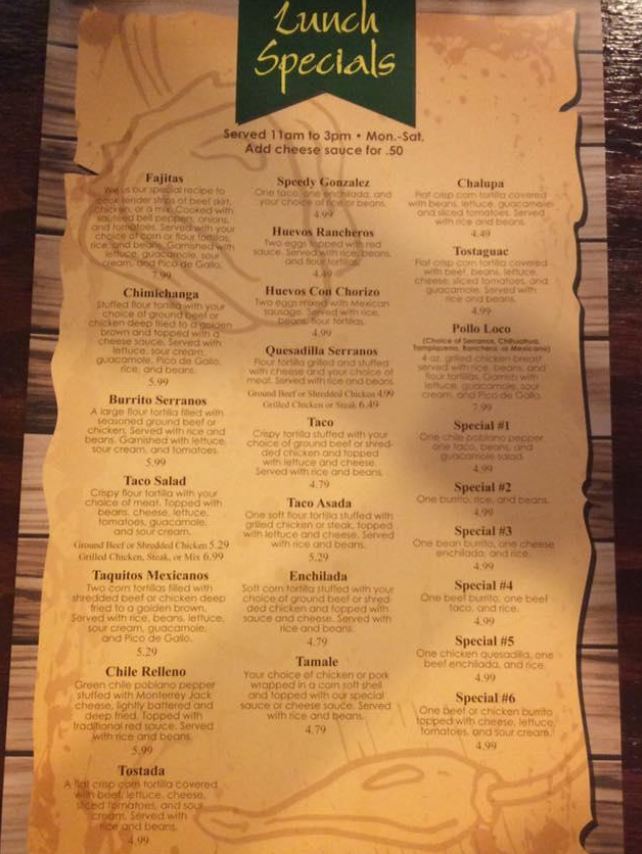 Serranos Mexican Grill Menu